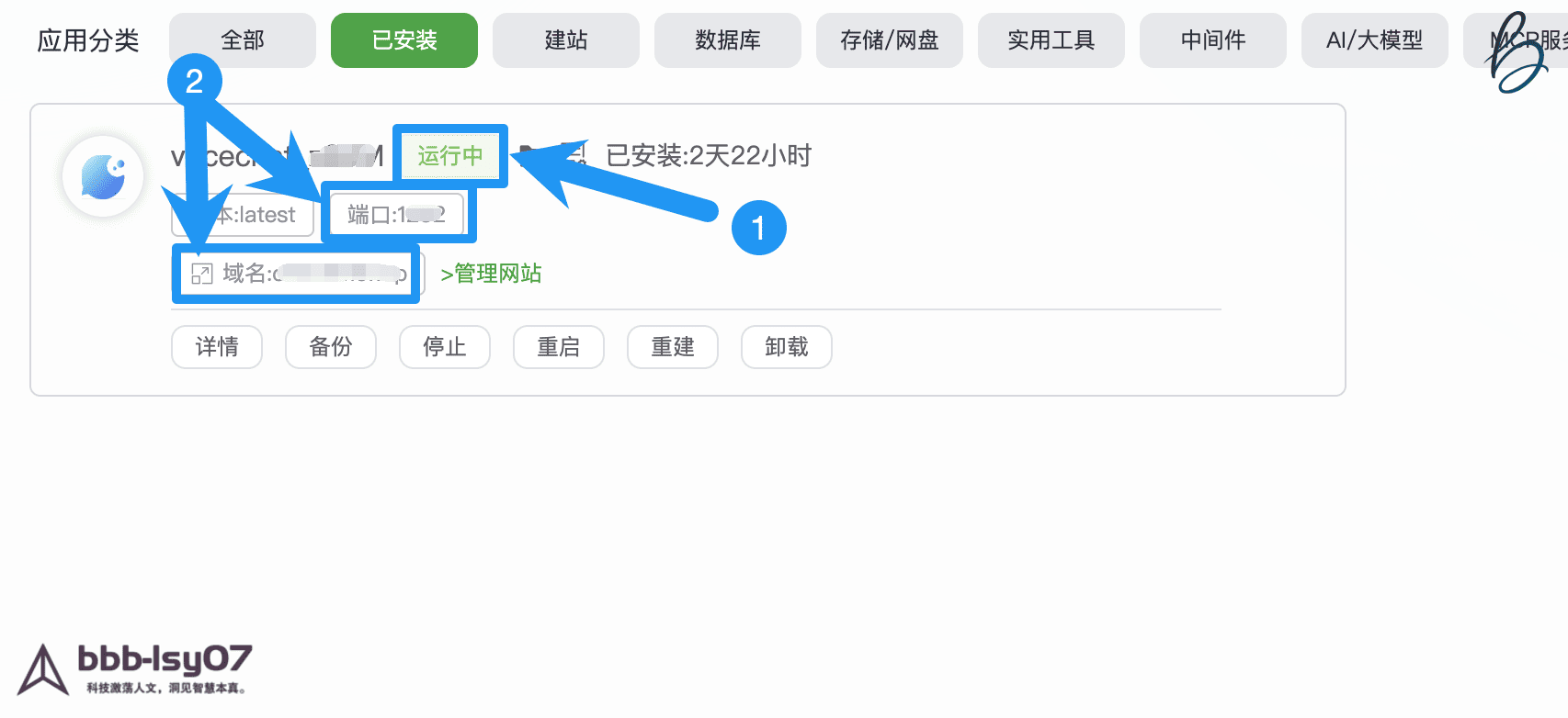 当状态为运行中说明安装完成,访问安装时设置的域名或ip+端口访问按照提示安装
