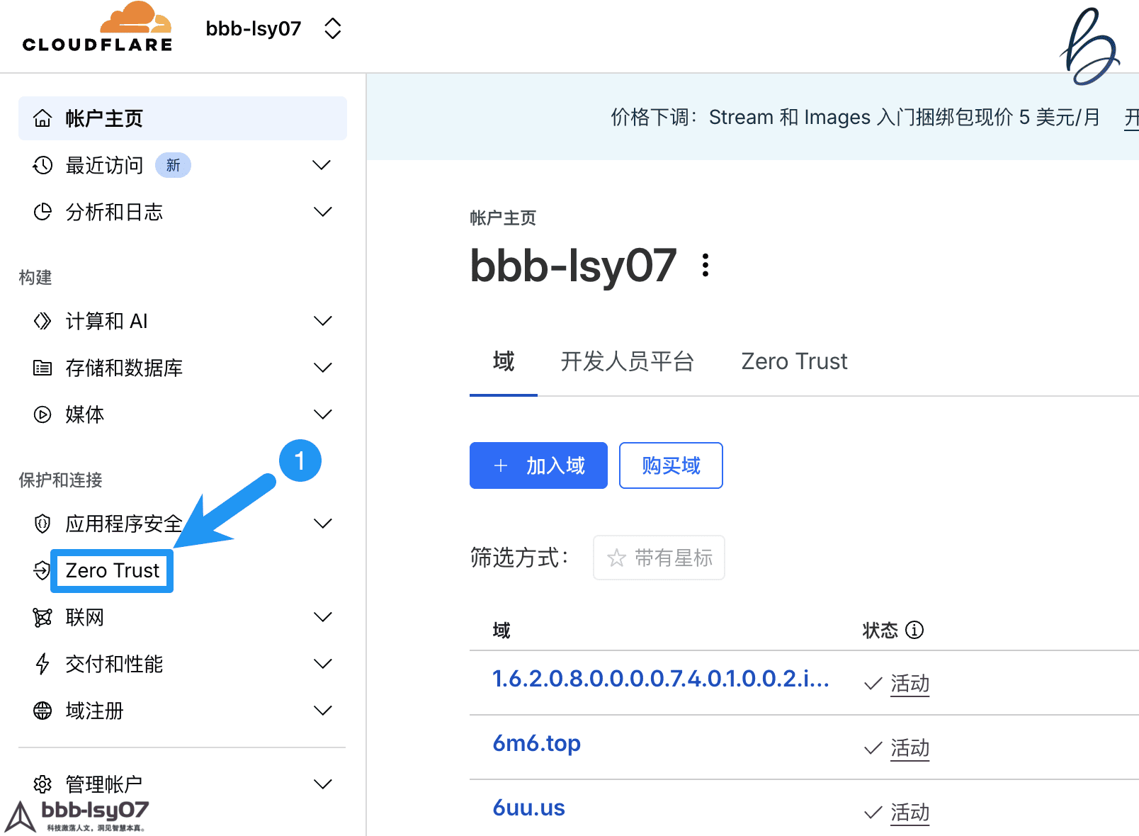2. 进入 Zero Trust 面板