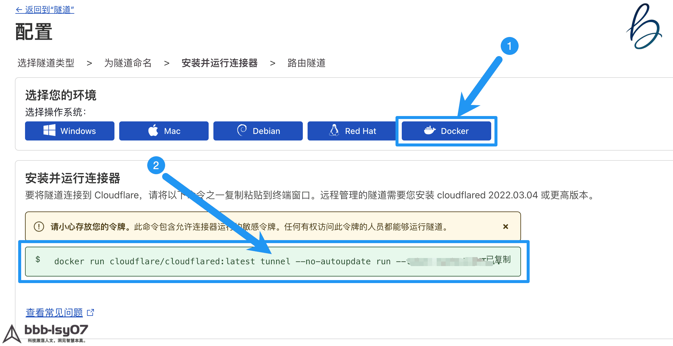 创建成功后,Cloudflare 会提供安装命令(这里用类似